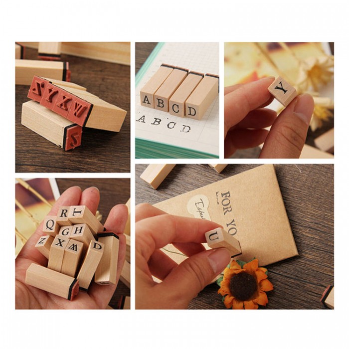 Custom Alphabet Number Wooden Rubber Stamp Set for Kids Educational