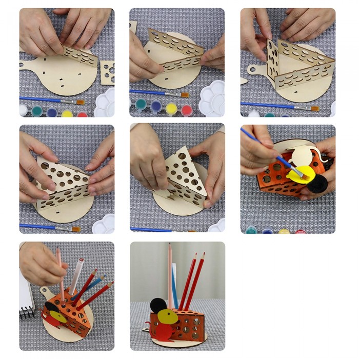 Customizable DIY Wooden Pen Holder Puzzle Kit, Unfinished Dinosaur/Mouse Shape Desk Organizer for Kids Painting Crafts