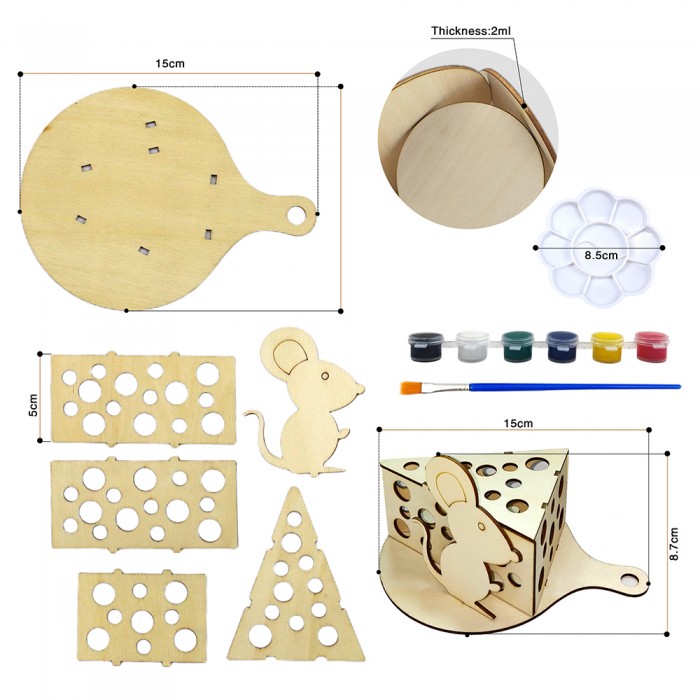Customizable DIY Wooden Pen Holder Puzzle Kit, Unfinished Dinosaur/Mouse Shape Desk Organizer for Kids Painting Crafts