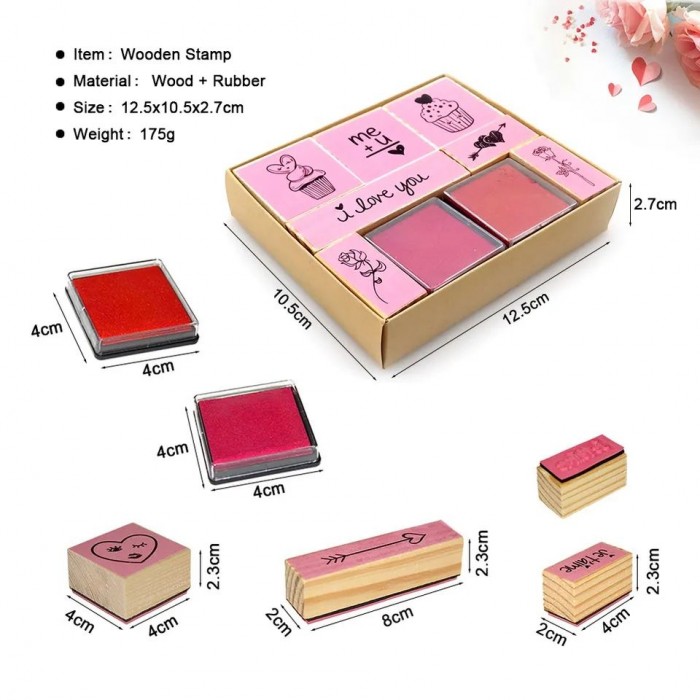 Kids Mini Cute Wooden Rubber Stamp Set with Ink Pad, Christmas & Diary DIY Stamps